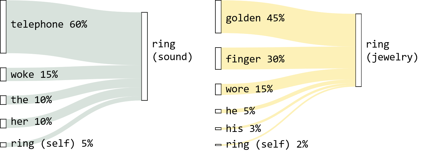 ring, and therefore how much they tell us aboutring’s meaning in this context.A token’s meaning is a mixture of tokens from a given context, weighted by relevance.